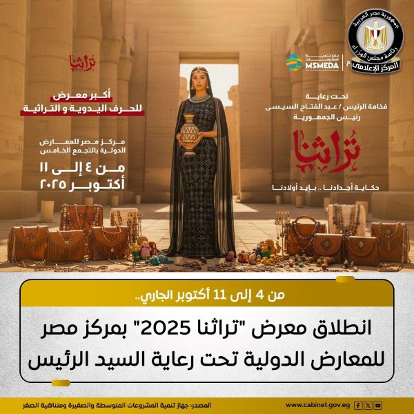 📍 إقامة هذا المعرض سنويًا تحت رعاية السيد الرئيس يعكس اهتمام الدولة بهذا القطاع الإنتاجي الضخم الذي يوفر فرص عمل للملايين من شباب وفتيات مصر خاصًة في الصعيد والمحافظات الحدودية، ويؤكد تقدير القيادة السياسية لهذه الفنون العريقة وللعاملين فيها، وأهميتها في توضيح أصالة الثقافة والفنون المصرية. #جهاز_تنمية_المشروعات_المتوسطة_والصغيرة_ومتناهية_الصغر #المركز_الإعلامي_لمجلس_الوزراء #رئاسة_مجلس_الوزراء