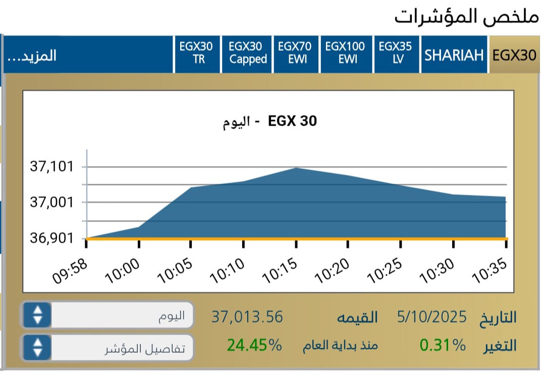 حيث سجل المؤشر الرئيسى EGX30 صعود ايجابي ملحوظ مع بداية الجلسه يمثل 36,900,7نقطه .