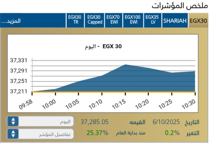 حيث سجل المؤشر الرئيسى EGX30 صعود ايجابي ملحوظ مع بداية الجلسه يمثل 37,210,83نقطه .