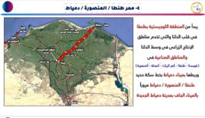 بالإضافة الى ممر القاهرة – الإسكندرية اللوجيستي الذي يبدأ من محطة سكك حديد قطارات صعيد مصر بمنطقة بشتيل مروراً بميناء السادات الجاف وميناء السادس من أكتوبر الجاف وربطهما بشبكة السكك الحديدية علي خط بشتيل – الاتحاد – ايتاي البارود – القباري من خلال وصلتي كفر داود – السادات بطول 36 كم والمناشي – 6 اكتوبر بطول 68 كم وحتي ميناء الإسكندرية الكبير ، وممر طنطا – المنصورة – دمياط اللوجيستي الذي يبدأ من المنطقة اللوجستية بطنطا في قلب الدلتا والتي تخدم مناطق الإنتاج الزراعي في وسط الدلتا والمناطق الصناعية في ( قويسنا – طنطا – كفر الزيات – المحلة – المنصورة ) وربطها بميناء دمياط بخط سكة حديد ( طنطا / المنصورة / دمياط ) مروراً بالميناء الجاف بمدينة دمياط الجديدة