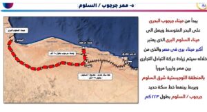 وكذلك ممر جرجوب – السلوم اللوجيستي الذي يبدأ من ميناء جرجوب البحري على البحر المتوسط ويصل الي ميناء السلوم البري الذى يعتبر أكبر ميناء بري في مصر والذى من خلاله سيتم زيادة حركة التبادل التجاري بين مصر وليبيا مروراً بالمنطقة اللوجستية شرق السلوم ويربط بينهما خط سكة حديد جرجوب / السلوم بطول 223 كم بالإضافة الى ممر القاهرة – اسوان – ابو سمبل اللوجيستي الذي يشمل الخط الثاني من شبكة القطار الكهربائي السريع وطريق الصعيد الصحراوي الغربي مروراً بالموانئ البرية الجافة والمناطق اللوجستية ( الفيوم الجديدة – كوم أبو راضي – سوهاج الجديدة – أبو سمبل ) ومناطق الاستصلاح الزراعي بتوشكى وشرق العوينات ومنطقة أبو سمبل السياحية وأخيرا ممر سفاجا – قنا – ابو طرطور اللوجيستيالذي يبدأ من ميناء سفاجا على البحر الأحمر والمنطقة اللوجستية بسفاجا مروراً بالخط الثالث للقطار الكهربائي السريع وخط سكة حديد الديزل ( سفاجا – قنا – أبو طرطور) .