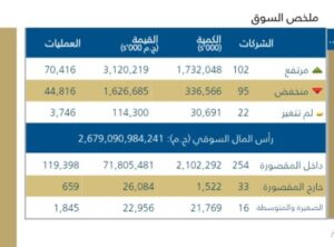 اذا ارتفعت اسهم 102شركة وانخفضت اسهم 95شركة وبقاء اسهم 22شركه مستقره عل مستويات أسعارها بدون تغير .