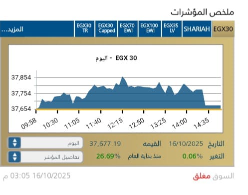 انهت البورصه المصريه تعاملات الخميس 16 اكتوبر على تباين فى أداء المؤشرات، وسط تحركات متباينه من المستثمرين.