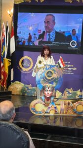 كما رحبت وقدمت الشكر لجامعة الدول العربية راعى المؤتمر والسادة وزراء الحكومة المصرية ممثليها رعاة القمة وداعميها والمؤسسات الاهلية.