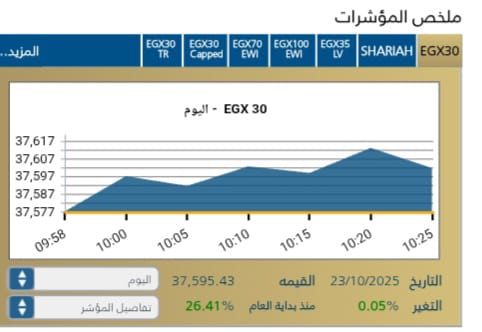 استهلت البورصه المصريه جلسة الخميس 23 اكتوبر على ارتفاع .