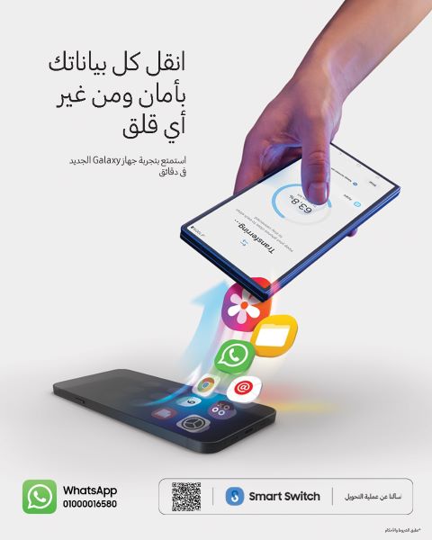 ترى شركة سامسونج إلكترونيكس مصر أن الانتقال إلى جهاز جديد يجب أن يكون تجربة بسيطة ومريحة، ولذلك طورت الشركة أداة Smart Switch التي تسهّل الانتقال من هاتف لآخر بمرونة وسلاسة، وتتيح الأداة للمستخدمين نقل جهات الاتصال والصور والتطبيقات والإعدادات إلى الهاتف الجديد بخطوات بسيطة، مع إضافة أجهزة Android وiOS ليشمل الدعم أجهزة أكثر، وبذلك أصبح الانضمام إلى منظومة Galaxy أو الاستمرار فيها أكثر سهولة من أي وقت مضى، دون القلق بشأن فقدان البيانات أو بدء الإعدادات من جديد..