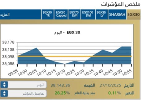 استهلت البورصه المصريه جلسة الاثنين 27 اكتوبر على أداء متباين .