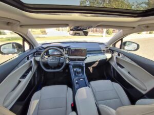 إنطباع قيادة LYNK & CO (06) يمكن وصفها ببساطة شديدة (السيارة الـ كروس أوفر – العائلية الشبابية االنشطة التى تفوق توقعاتك) ، فالأمر يبدأ بمدى تفاعل السائق والركاب مع البيئة والرحابة الداخلية لمقصورة الركاب وخاصة مع نوعية الخامات المستخدمة وتفوق تصميمها وإستخدامها ، وهو ما ترجم مدى شعور كافة الركاب بالراحة – مع كافة الأعمار .. الصغار ومتوسطى العمر وكبار السن – حتى على القيادة لمسافات طويلة حتى مع التصميم الرياضى لمقاعد المقدمة التى تلتف حول أجسام الركاب.