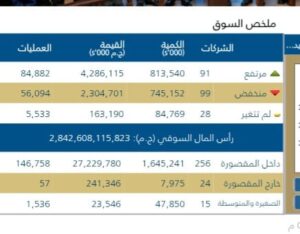 بلغ عدد العمليات المنفذه149,898 المقيده نحو 2,842,608,115تريليون جنيه بدعم من المؤسسات المحليه، مع ترقب المستثمرين استمرار هذا الزخم خلال الجلسات القادمه.