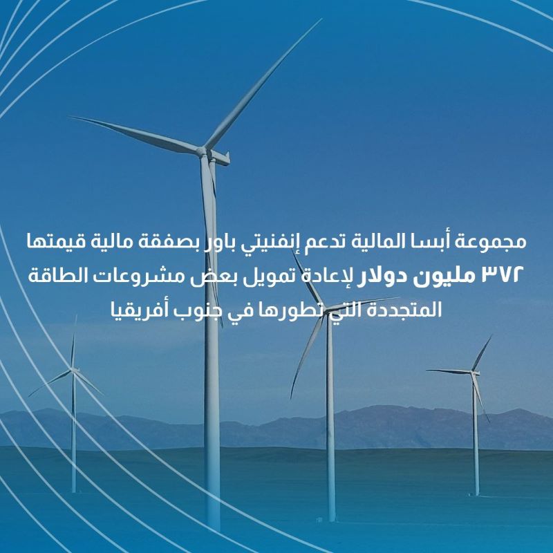 سيتم توجيه صفقة إعادة التمويل لدعم بعض مشروعات إنفنيتي باور القائمة لطاقة الرياح بقدرة 368 ميجاوات، والخاصة بممارسة Window 3 ضمن برنامج المشتريات المستقل لموردي الطاقة المتجددة في جنوب أفريقيا (REIPPPP)، ويشمل ذلك مشروعات مزارع رياح نووبورت، ولويريسفونتين 2، وخوباب، وجميعها تقع في منطقة شمال كيب تاون. تعكس هذه الصفقة استمرار ثقة المستثمرين والمؤسسات الدولية في استراتيجية إنفنيتي باور، والنمو السريع الذي يشهده قطاع الطاقة المتجددة في أفريقيا. وفي إطار الصفقة، يلعب قطاع الخدمات المصرفية للشركات والاستثمار في مجموعة أبسا المالية (CIB) دور المرتب الرئيسي الأوّلي، ومسوق التمويل، ووكيل التمويل، ووكيل الضمان، وبنك الحساب في هذه الصفقة، وهو ما يؤكد ريادة هذه المؤسسة المالية في هيكلة وتقديم حلول تمويلية مستدامة ومعقدة في أفريقيا.