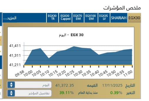 كما سجل المؤشر الرئيسى EGX30 فى بداية الجلسه يمثل 40,211,27 نقطه .
