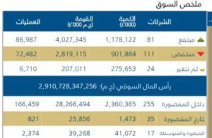 اذا ارتفعت اسهم 81شركه وانخفضت اسهم111 شركه وبقاء اسهم24 شركه مستقره على مستويات أسعارها بدون تغير.