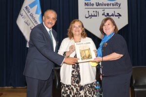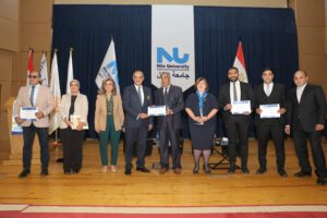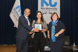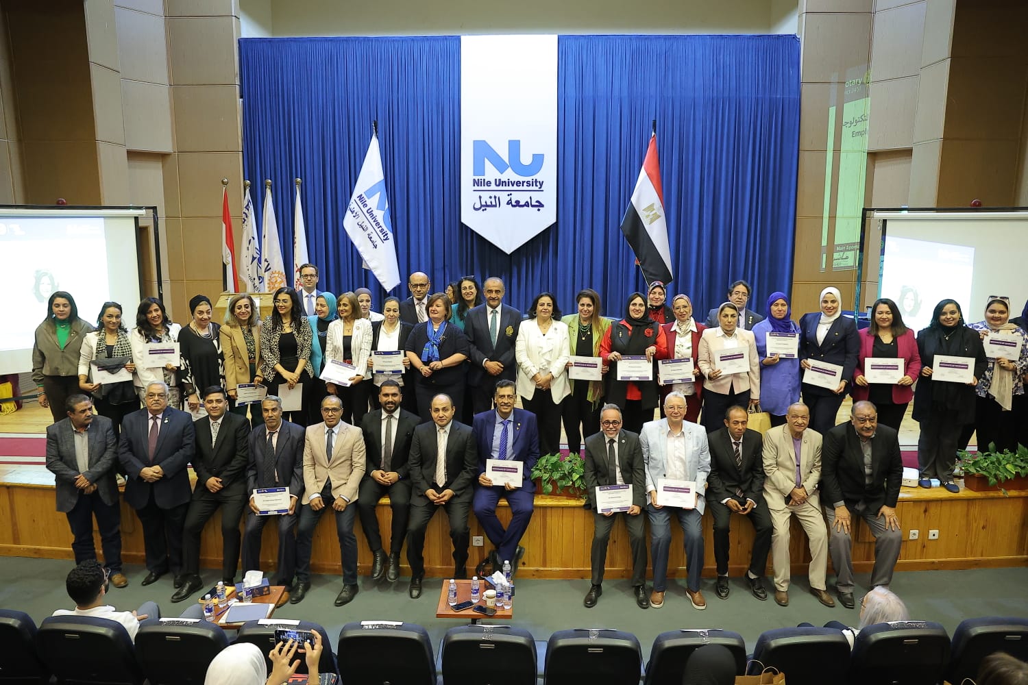 كما قام الدكتور حسام فرحات والدكتورة نيفين عبد الخالق، بتكريم الدكتورة هدى دحروج وممثلي وزاره الاتصالات الذين قاموا بالتدريب علي برنامج مهارات الذكاء الاصطناعي والشركاء وممثلي الجهات المشاركين، شركة مباشر لتداول الاوراق المالية والسندات وجمعية رجال الأعمال المصريين، ومباشر ومؤسسة سفراء من أجل مصر المستدامة وخريجي برنامج سفراء الذكاء الاصطناعي والقائمين على تنفيذه.