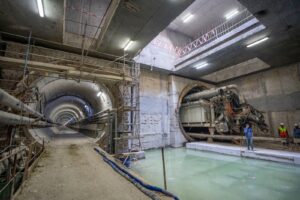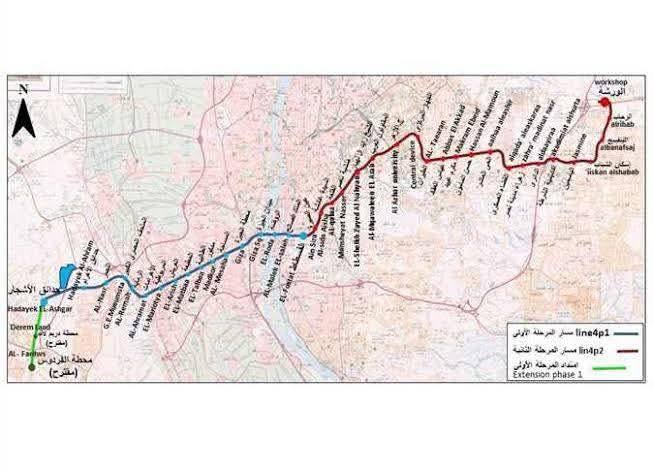 المرحلة الأولى بطول 19 كم بعدد 17 محطة تبدء من غرب الطريق الدائري على حدود مدينة 6 أكتوبر مروراً بمحطة المتحف المصري الكبير ثم ميدان الرماية ثم شارع الهرم حتى محطة الجيزة ليتقاطع مع الخط الثاني للمترو ، ثم يمتد بعد ذلك ليتقاطع مع الخط الأول للمترو بمحطة الملك الصالح وتنتهي المرحلة الأولى للخط بمحطة الفسطاط
