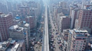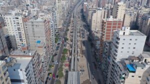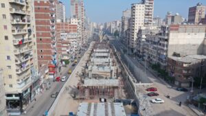 2- جارى تركيب الكمرات لكباري المسار في القطاعات من محطة طوسون وحتى محطة غبريال كما يجرى تنفيذ أعمال الخوازيق والاعمدة والبلاطات للمسار العلوي.