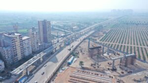 3- جاري تنفيذ أعمال الاساسات (الخوازيق والقواعد) والاعمدة للمحطات بالمشروع.