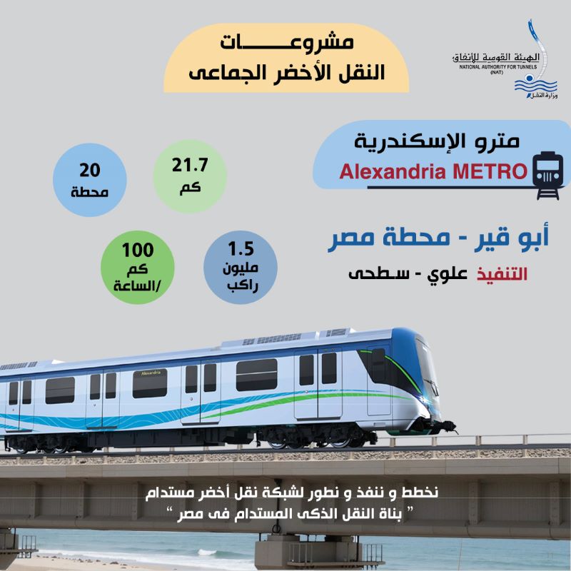 5- المشروع سيشكل نقلة نوعية كبيرة في منظومة النقل الجماعي الأخضر المستدام صديق البيئة بالإسكندرية كما سيساهم في تحقيق التنمية الاقتصادية والاجتماعية السريعة المستهدفة لمحافظة الإسكندرية.