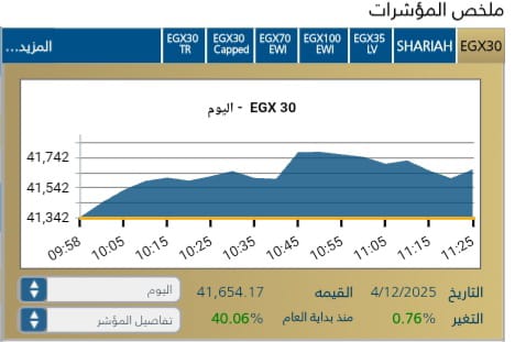 استهلت البورصة المصرية تعاملات جلسة اليوم الخميس 4 ديسمبر على اتجاه صاعد جماعي لمؤشراتها الرئيسية، بدعم من عمليات شراء مكثفة من المؤسسات المحلية والأجنبية، مع استمرار الأداء الإيجابي لأسهم البنوك والصناعات الثقيلة.