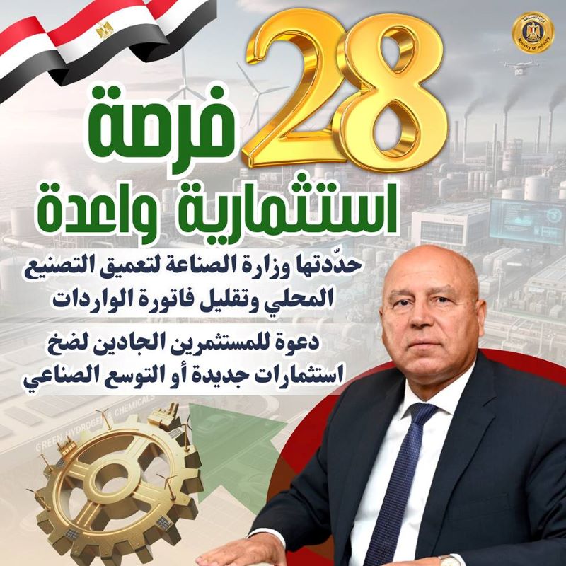 ▪︎الوزارة تدعو المستثمرين الجادين لضخ استثمارات جديدة أو التوسع في هذه الصناعات الواعدة والمستهدفة لتقليل فاتورة الواردات
