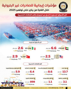 بالإنفوجراف.. مؤشرات إيجابية للصادرات غير البترولية خلال الفترة من يناير حتى نوفمبر 2025