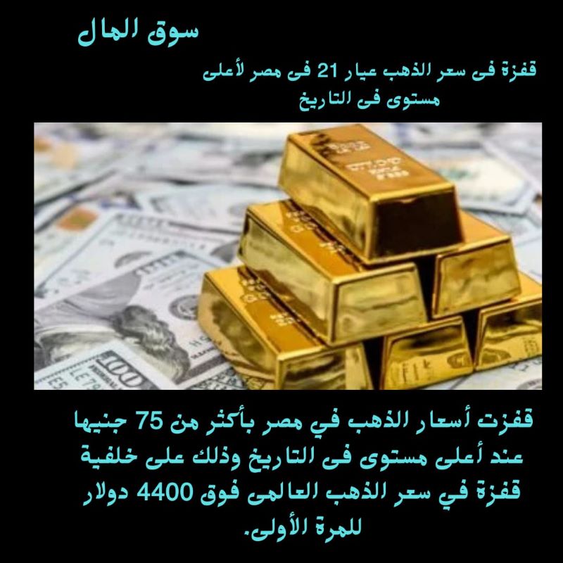 قفزت أسعار الذهب في مصر بأكثر من 75 جنيها عند أعلى مستوى فى التاريخ وذلك على خلفية قفزة في سعر الذهب العالمى فوق 4400 دولار للمرة الأولى.