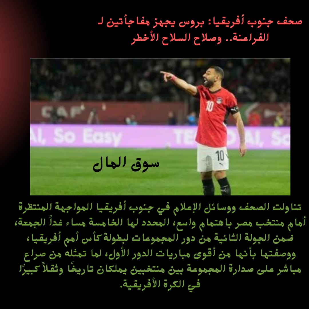 وأكدت الصحيفة أن إحكام الرقابة على محمد صلاح سيكون عنصرًا حاسمًا لمنتخب جنوب أفريقيا، مع التحذير من منحه أي مساحات قد يستغلها لصالح الفراعنة.وفي الوقت ذاته، أبدت وسائل الإعلام الجنوب أفريقية ثقة واضحة في منتخب “بافانا بافانا” بعد انطلاقته الإيجابية في البطولة، معتبرة أن الفوز في الجولة الأولى منح اللاعبين دفعة معنوية قوية قبل اختبارهم الصعب أمام منتخب مصر.