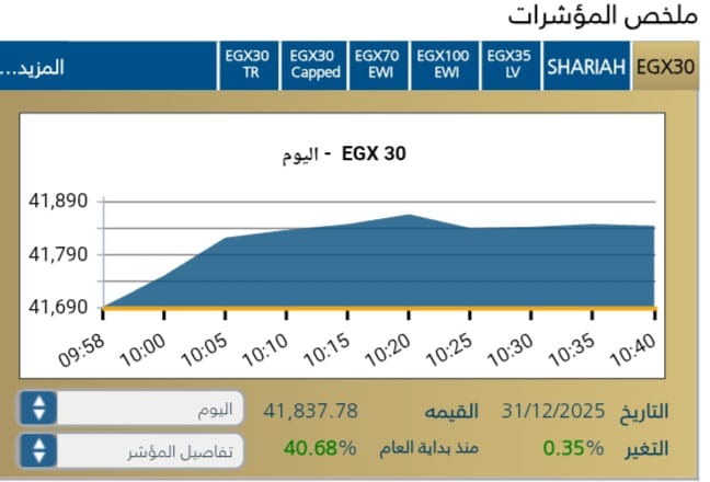 استهلت البورصه المصريه جلسة اليوم على أداء متباين ، حيث سجل المؤشر الرئيسى EGX30 صعود ايجابي ملحوظ مع بداية الجلسه يمثل 41,689,96 نقطه .