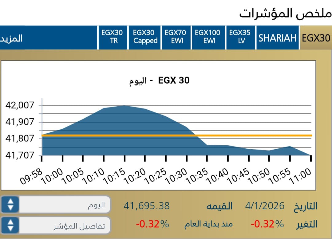 حيث سجل المؤشر الرئيسى EGX30 مع بداية الجلسه اليوم 41,828,97نقطه .