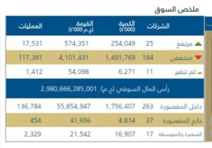 اذا ارتفعت اسهم 25شركه فقط وانخفضت اسهم 184شركه وبقاء اسهم 11شركه مستقره على مستويات أسعارها بدون تغير.