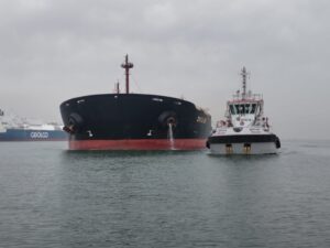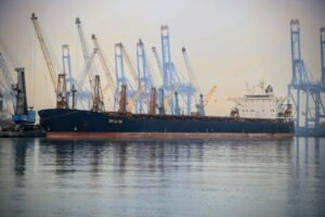 ويبلغ طول السفينة ( 289 مترًا )، فيما يصل غاطسها إلى( 15,5 مترًا )، وهو ما يعكس الجاهزية الفنية العالية للميناء وقدرته على استقبال السفن ذات الحمولات القياسية، في ضوء أعمال التطوير المستمرة التي تشهدها البنية التحتية للميناء.