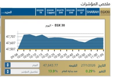 كما سجل المؤشر الرئيسى EGX30 فى بداية الجلسه يمثل 47,507,43 نقطه.