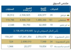 اذا ارتفعت اسهم39 شركه فقط وانخفضت اسهم 161شركه وبقاء اسهم 19شركه مستقره على مستويات أسعارها بدون تغير.