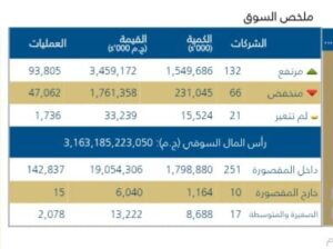 اذا ارتفعت اسهم 132شركه وانخفضت اسهم 66شركه وبقاء اسهم 21شركه مستقره على مستويات أسعارها بدون تغير.