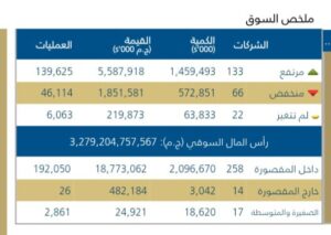 بلغ عدد العمليات المنفذه 191,802 المقيده نحو 3,279,204,757,567 تريليون جنيه بدعم من المؤسسات المحليه ،مع ترقب المستثمرين استمرار هذا الزخم خلال الجلسات القادمه.
