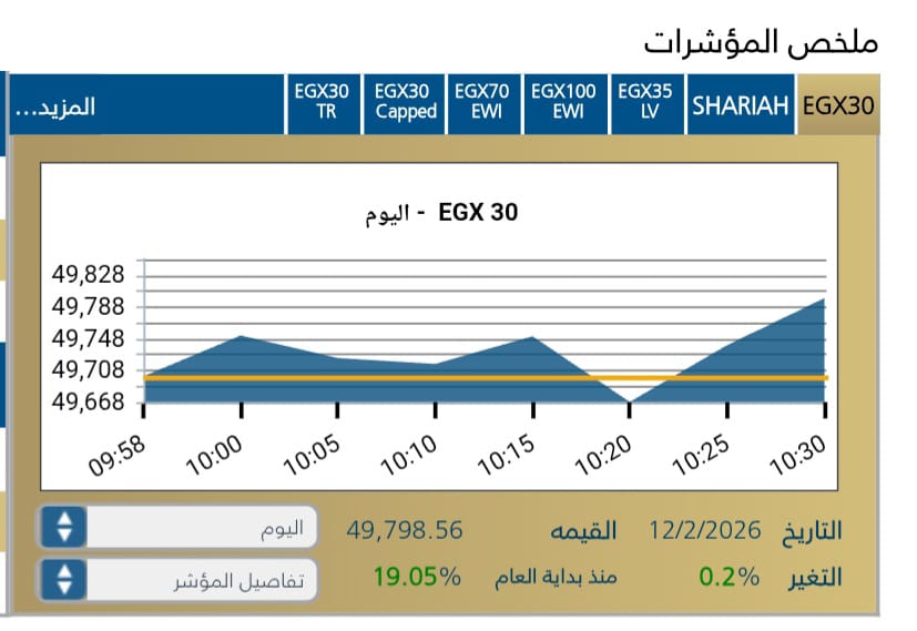 استهلت البورصه المصريه جلسة اليوم على أداء واضح ، حيث سجل المؤشر الرئيسى للبورصه EGX30 صعود ملحوظ مع بداية الجلسه يمثل 49,700,24 نقطه .