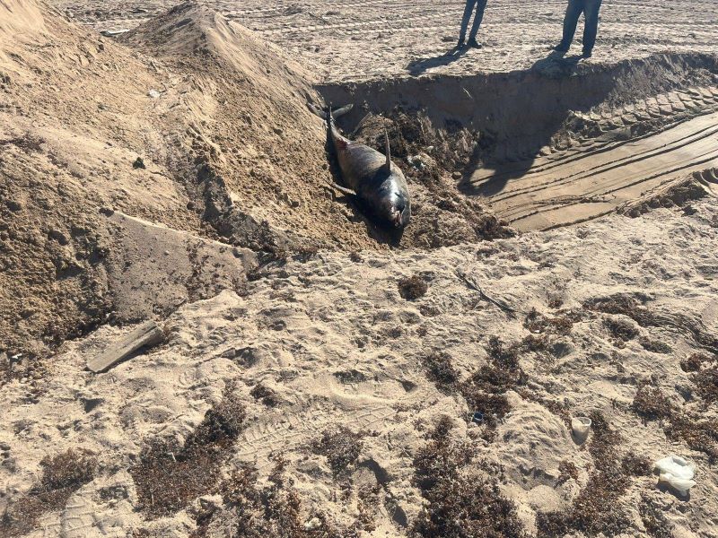 دفن الدرفيل النافق في رأس غارب وفقاً للاشتراطات البيئية