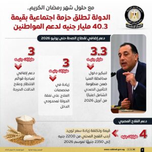 في خطوة تستهدف تخفيف الأعباء المعيشية وتعزيز الحماية الاجتماعية، أعلنت الحكومة إطلاق حزمة دعم متكاملة للفئات الأولى بالرعاية والأقل دخلًا، وذلك تنفيذًا لتوجيهات الرئيس عبد الفتاح السيسي، رئيس الجمهورية.