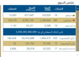اذا ارتفعت اسهم 16شركه فقط وانخفضت اسهم 186 شركه وبقاء اسهم 19 شركه مستقره على مستويات أسعارها بدون تغير.