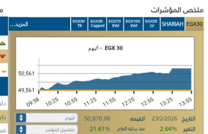 وجاء أداء السوق إيجابيًا مع اتجاه المؤشر الرئيسي EGX30 للارتفاع بنسبة 2,64% ليغلق عند مستوى 50,780,06نقطه بنهاية الجلسة، وسط تدولات قيمتها 5,7مليار جنيه .