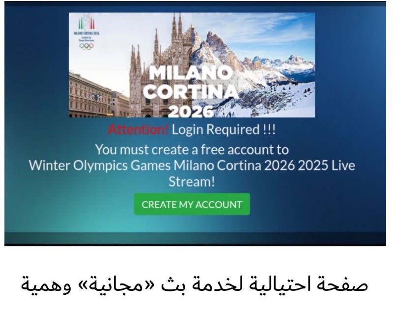 ينشئ المحتالون مواقع إلكترونية مزيفة تشبه منصات البث الشهيرة، ويقدمون للمستخدمين عروضاً «رخيصة»، أو «حصرية»، أو «مجانية» لمشاهدة منافسات بطولة الأولمبياد الشتوي مثل سباقات التزلج على الجليد أو رياضة الكيرلنغ. وهكذا، يبادر المستخدمون إلى إدخال بيانات بطاقاتهم الائتمانية متوقعين الوصول الفوري لفعاليات البطولة، لكنهم يخسرون أموالهم ويعرضون بياناتهم المالية للسرقة، أو يعاد توجيههم إلى أنشطة احتيالية إضافية عند الضغط على زر «تشغيل».