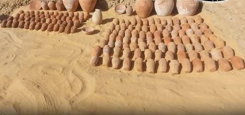 📍 نجحت البعثة كذلك في الكشف عن غرفتي دفن بهما حوالي 160 من الأواني الفخارية متنوعة الأحجام والأشكال من عصر الدولة القديمة، أغلبها في حالة جيدة من الحفظ وعليها كتابات باللغة الهيراطيقية، حيث تشير الدراسات الأولية إلى أنها كانت تستخدم لتخزين السوائل والحبوب.
