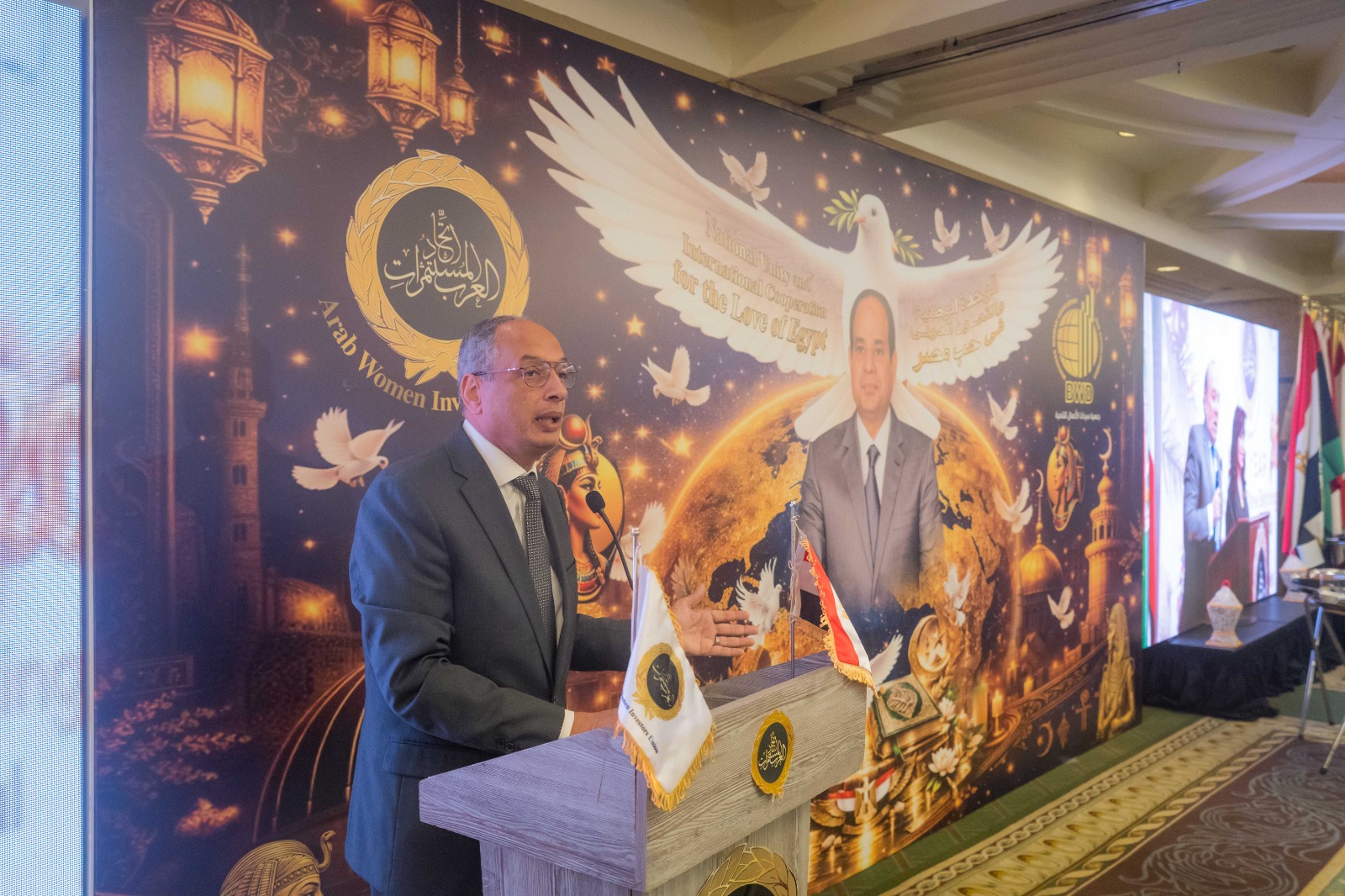 جاء ذلك خلال كلمته فى لقاء ” إفطار الوحدة الوطنية والتعاون الدولي وفى حب مصر ” الذى نظمه اتحاد المستثمرات العرب وجمعية سيدات الأعمال للتتمية برئاسة د. هدى يسى ، وبحضور وزير الصناعة المهندس خالد هاشم ومساعد وزير الشباب والرياضة العميد وسام صبرى