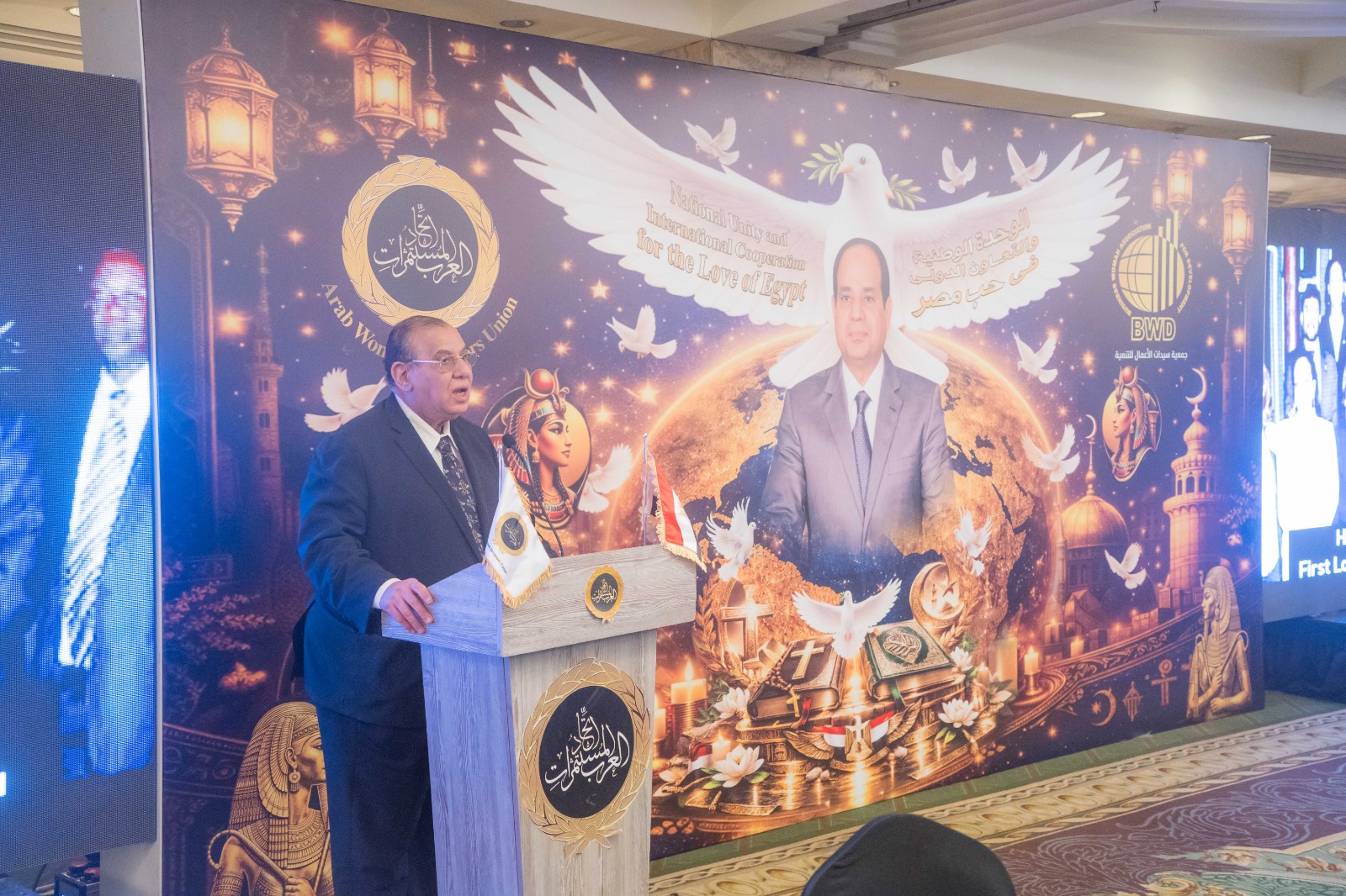وفى رسالة اخرى ، توجه طلعت عبد القوى ، برسالة شكر للدكتورة هدى يسى ، من القلب التى استطاعت أن تجمع القيادات ، واصفا أنها من الشخصيات الداعمة للاستثمار المحلى والعربي والإفريقي.