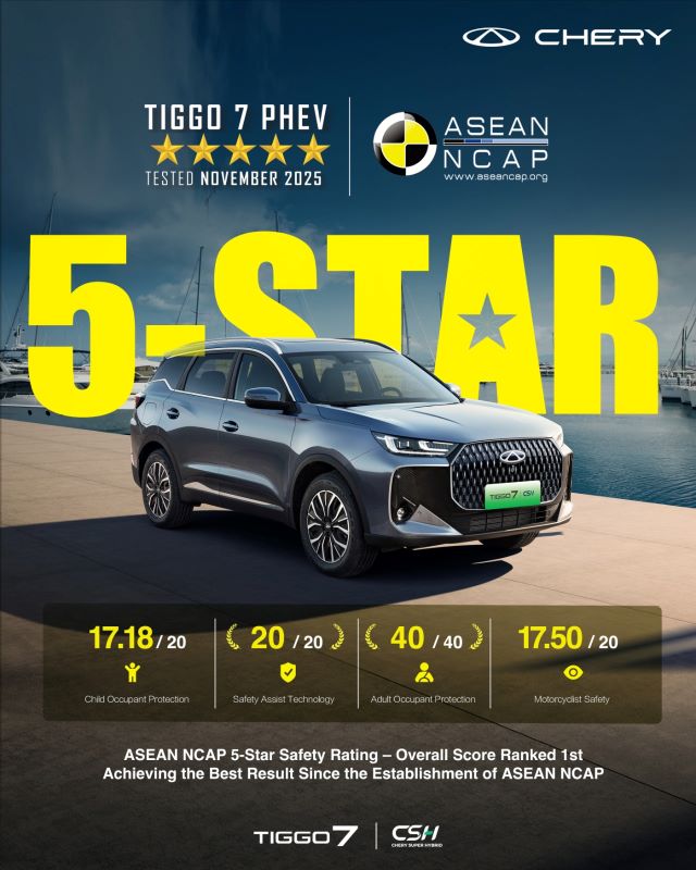 اللافت أن TIGGO7 حققت العلامة الكاملة في فئتي حماية الركاب البالغين وأنظمة المساعدة على السلامة، لتصبح حاليًا السيارة الهجينة القابلة للشحن الخارجي الوحيدة التي تحقق علامة كاملة مزدوجة في هاتين الفئتين. ولمواكبة طبيعة حركة المرور المعقدة في جنوب شرق آسيا، التي تتسم بالكثافة الكبيرة للدراجات النارية وتدفق الحركة المرورية المتغير باستمرار، جُهزت السيارة بنظام المساعدة الذكية للقيادة من المستوى L2+ مع تحسينات متقدمة في نظام مراقبة النقاط العمياء والتنبيه بحركة المرور الخلفية المتقاطعة. وتعمل هذه الأنظمة تلقائيًا عند سرعة تتجاوز 15 كم/س، بما يسهم في تقليل مخاطر الاصطدام أثناء تغيير المسار أو فتح الأبواب.