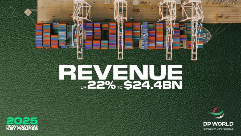 أعلنت مجموعة موانئ دبي العالمية “دي بي ورلد” اليوم عن تحقيق نتائج مالية قياسية لعام 2025، مع ارتفاع الإيرادات بنسبة 22% إلى 24.4 مليار دولار، وارتفاع الأرباح المعدّلة قبل استقطاع الفوائد والضرائب والإهلاك والاستهلاك بنسبة 18% إلى 6.4 مليار دولار (بهامش 26.3%)، مدفوعة بالأداء القوي في أعمال الموانئ والمحطات والخدمات اللوجستية.