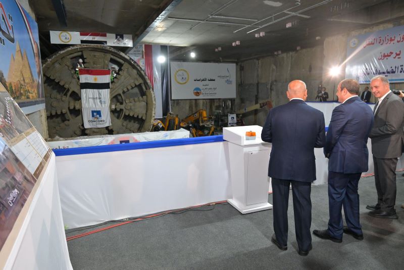 وأضاف السفير محمد الشناوي، المُتحدث الرسمي، أن الرئيس قام عقب تفقد ماكينة حفر الأنفاق، بالضغط على زر التشغيل إيذاناً باستكمال الحفر، ليُشاهد سيادته ماكينة الحفر عقب انتهائها من حفر الجزء الأخير للنفق، بين محطتي “حدائق الأشجار” و”الأهرامات” بطول ٦،٣٥ كيلومتر، ثم تفقد الرئيس جزء من النفق المُمهد.