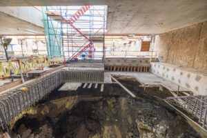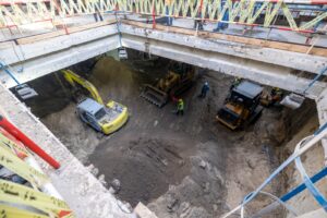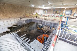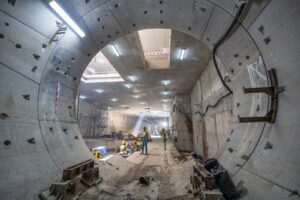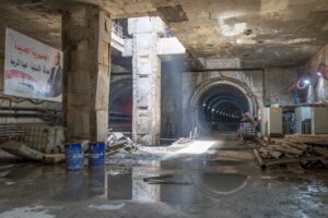 2. يجري حالياً تنفيذ الأعمال الإنشائية بالمحطات وأعمال الحفر النفقي لنفقي المترو (نفق لكل اتجاه) بواسطة 4 ماكينات حفر نفقي (2 ماكينة لكل اتجاه)