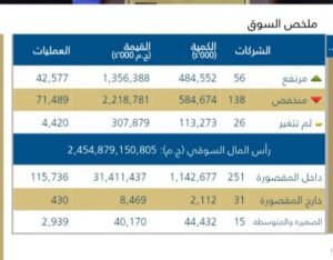 اذا ارتفعت اسهم 56 شركه فقط وهبطت اسهم 138 شركه وظلت اسهم 26 شركه مستقره عل مستويات أسعارها بدون تغير .