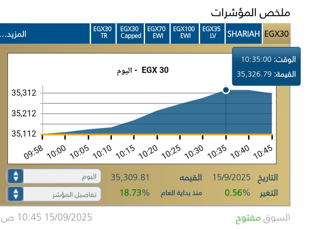 استهلت البورصه المصريه جلسة الاثنين 15سبتمبر عل أداء متباين .